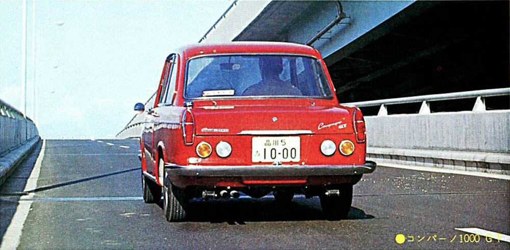 La Compagno 1000 GT fait son entrée en novembre 1968, c'est un Coupe 2 portes. Elle est équipée d'une injection d'essence mécanique, une première pour une voiture particulière japonaise. Une boîte automatique à 2 rapports est disponible en option. Des freins à disque sont montés sur la Spider et la 1000 GT. La photo du salon de Tokyo est l'unique document que j'ai trouvé.