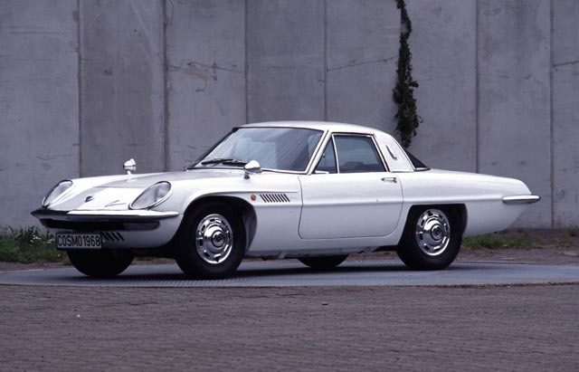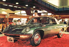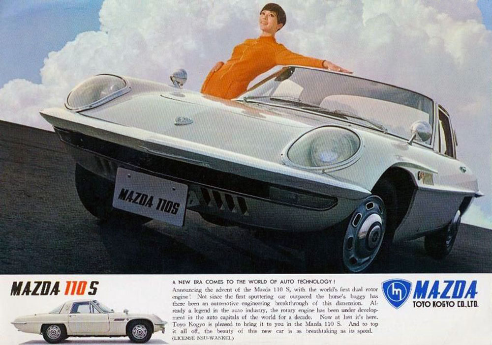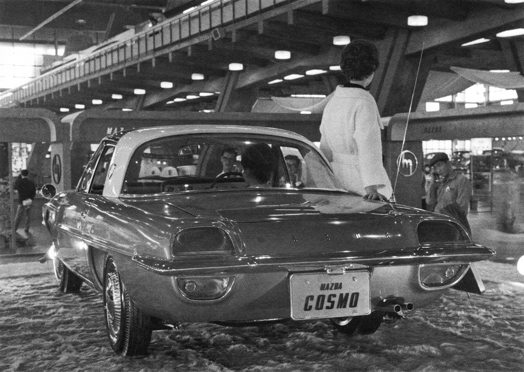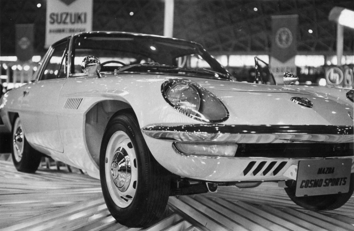 Mazda est l'un des premier constructeur automobile à s'intéresser au moteur Wankel à piston rotatif. Les droits sont acquis en 1961 auprès un accord avec NSU. Le développement de ce moteur donne beaucoup de fils à retordre aux ingénieurs de Mazda. Au salon de Tokyo de 1963, Mazda expose le shéma de l'auto et de son moteur, puis l'année suivante est dévoilé le prototype de la Cosmo Sport.