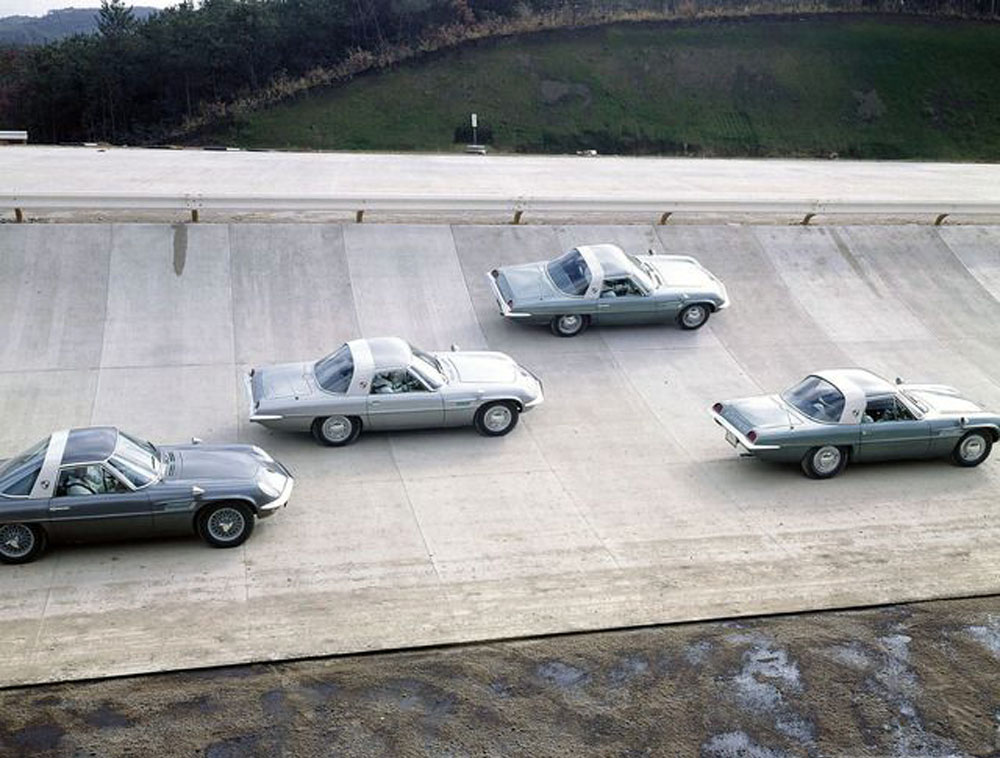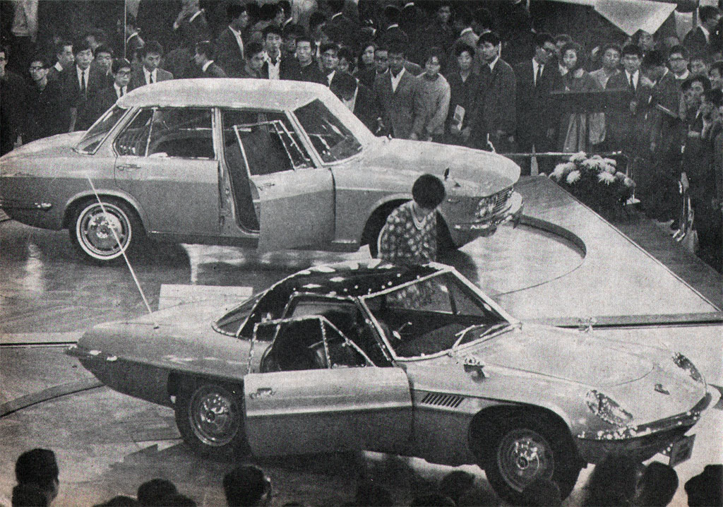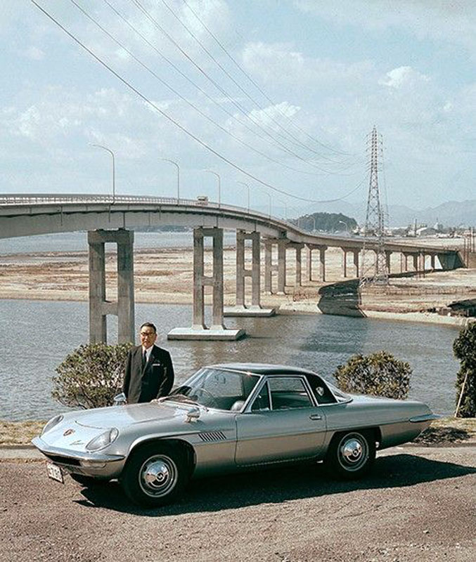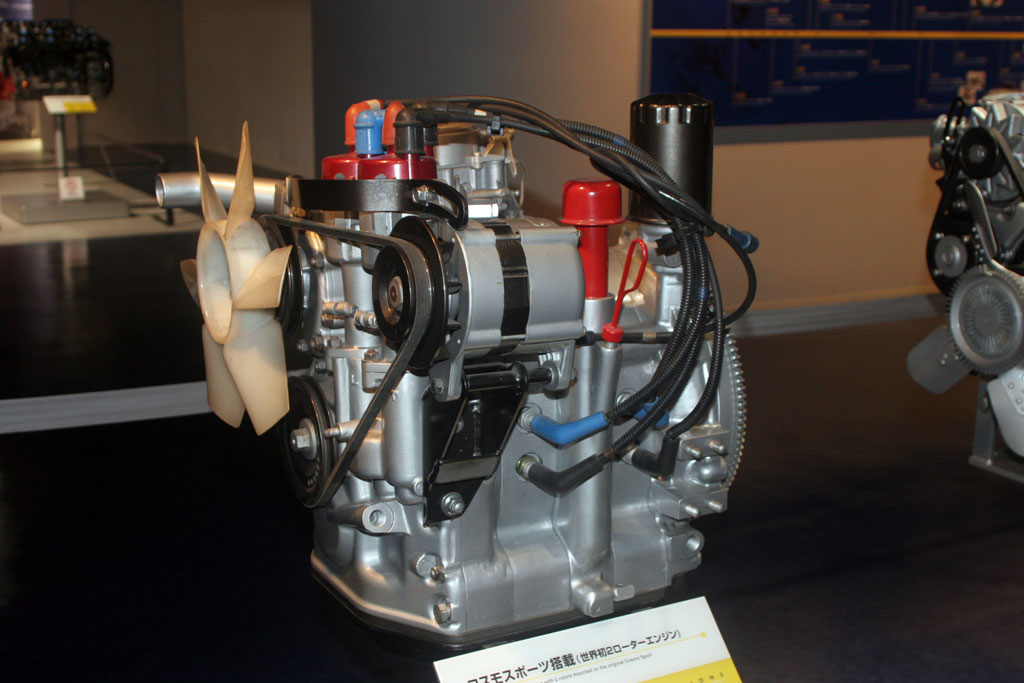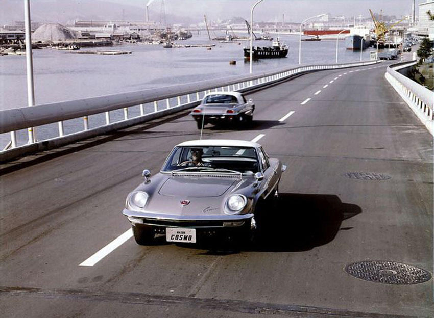 Mazda est l'un des premier constructeur automobile à s'intéresser au moteur Wankel à piston rotatif. Les droits sont acquis en 1961 auprès un accord avec NSU. Le développement de ce moteur donne beaucoup de fils à retordre aux ingénieurs de Mazda. Au salon de Tokyo de 1963, Mazda expose le shéma de l'auto et de son moteur, puis l'année suivante est dévoilé le prototype de la Cosmo Sport.