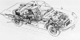 Question châssis, c'est plus classique avec une caisse autoporteuse en acier, des suspensions indépendantes à double triangulation à l'avant, mais un essieu rigide De Dion avec ressorts semi-elliptiques à l'arrière. Les freins sont encore à tambours à l'arrière.
