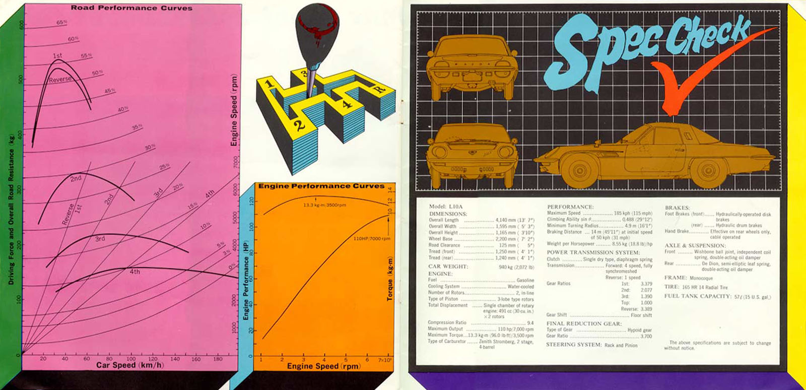 La compacité de ce moteur a permi de garder le capot très bas, donnant un aspect unique à la Cosmo qui peut alors atteindre 185 km/h en vitesse de pointe.
