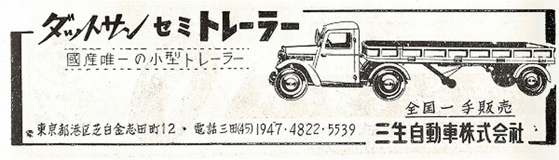 En 1952 débute la commercialisation de la Nissan A40, une Austin A40 Somerset anglaise fabriquée sous licence. C'est aussi l'année de lancement de la DC-3, un raodster sympathique qualifié de sport.