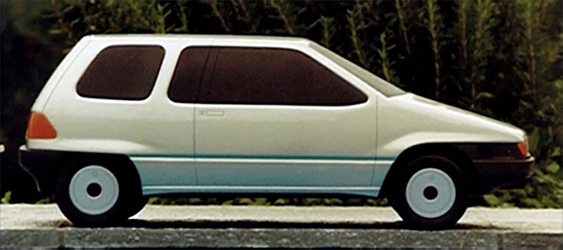 Prototype A : proposition des designers Nissan en interne. L'idée restera pour la future Nissan Prairie II de 1988.