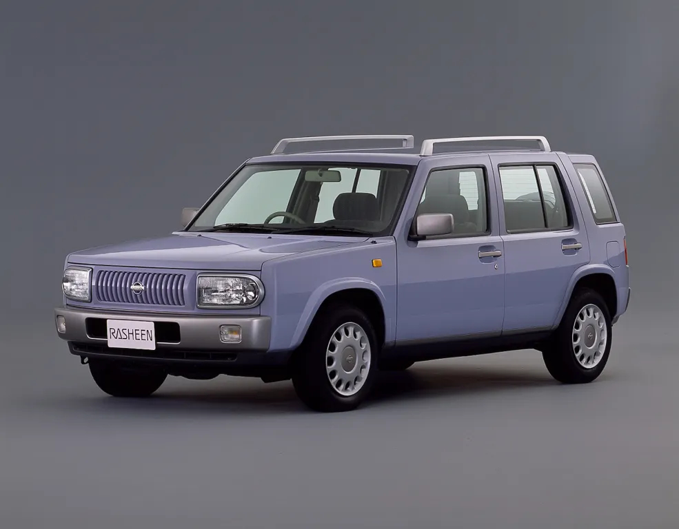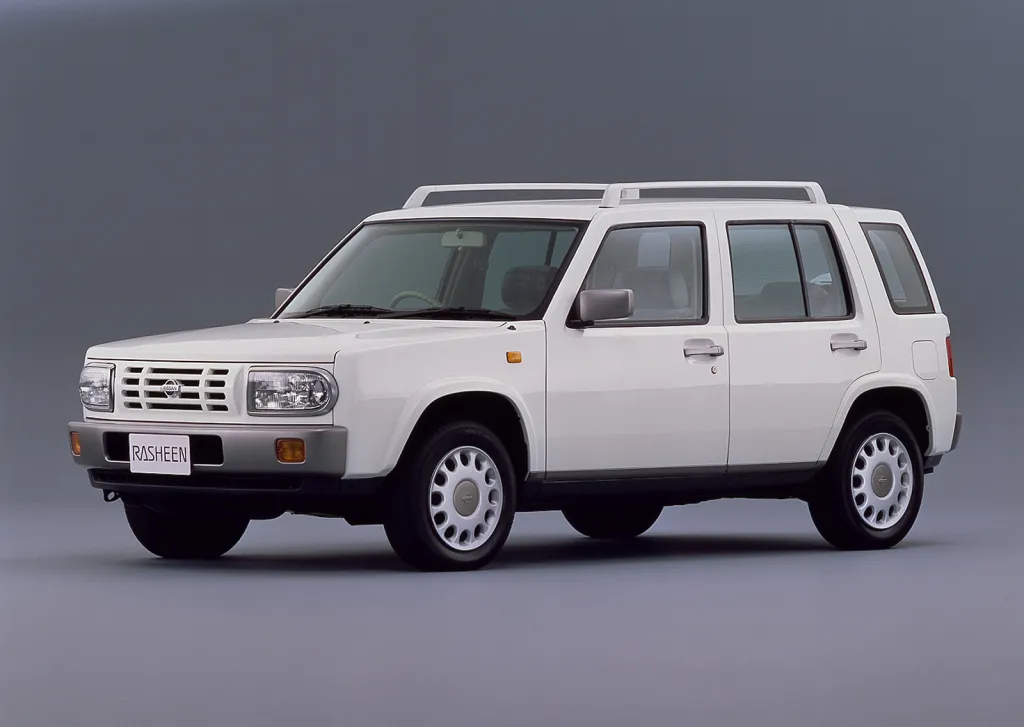 72 793 Rasheen ont été vendu de 1994 à 2000. Il est remplacé par le Quashqai. Les concurrents de l’époque comptent le Honda CR-V (1996), le Subaru Forester (1997) et le Land Rover Freelander (1997). |