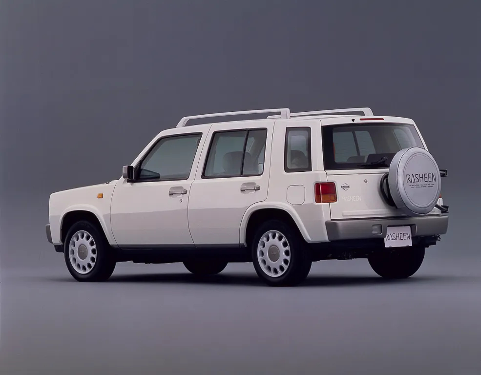 Le Rasheen est basé mécaniquement sur la Nissan Sunny et son moteur 1,5 L DOHC GA15DE délivrant 105 ch (RFNB14). Deux transmissions sont à choix, une boîte manuelle à 5 rapports ou une automatique à 4 rapports. Il ne subit que des évolutions esthétiques durant sa carrière. Un type F est disponible en août 1995 avec une peinture noire, des barres de toit et des appliques en bois dans l’habitacle. D’autres variantes sont introduites avec le temps, L et J, amenant l’ABS et le verrouillage central à télécommande. Le poids à vide se situe entre 1160 et 1310 kg selon les versions.