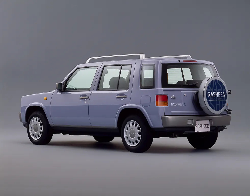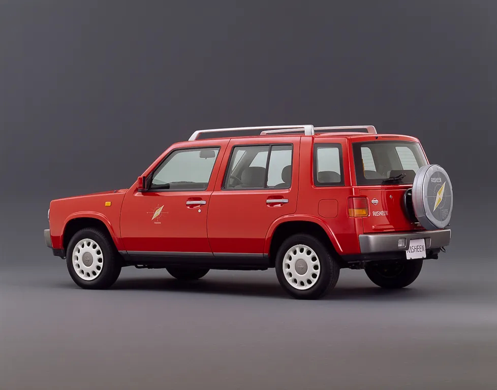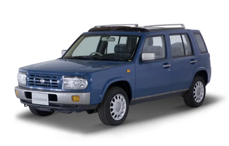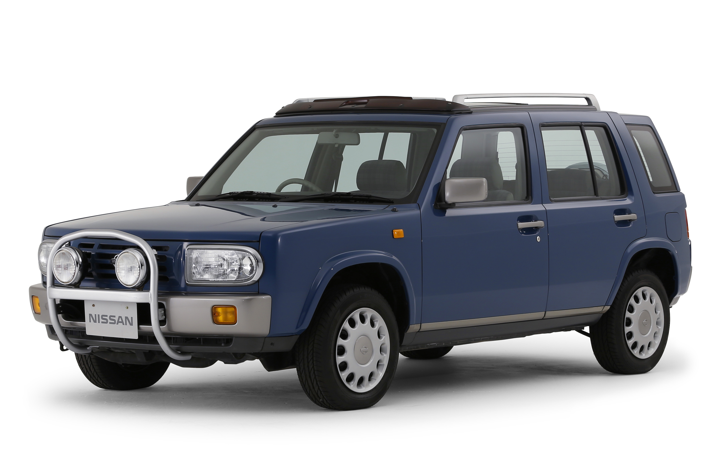 Le style carré et légèrement rétro est unique et ne ressemble à rien. Certains y voient une similitude avec la Wartburg 353 (1966-1989). Il est présenté au salon de Tokyo 1993 et la production démarre l’année suivante. Il sort en même temps que le RAV4 de Toyota et si le style en est à l’opposé, il y a bien des similitudes entre les deux véhicules. Une transmission intégrale avec viscocoupleur, système ATTESA pour la Nissan, en fait des tout-terrain urbains, ou SUV. Et puis il y a la roue de secours sur la porte arrière.