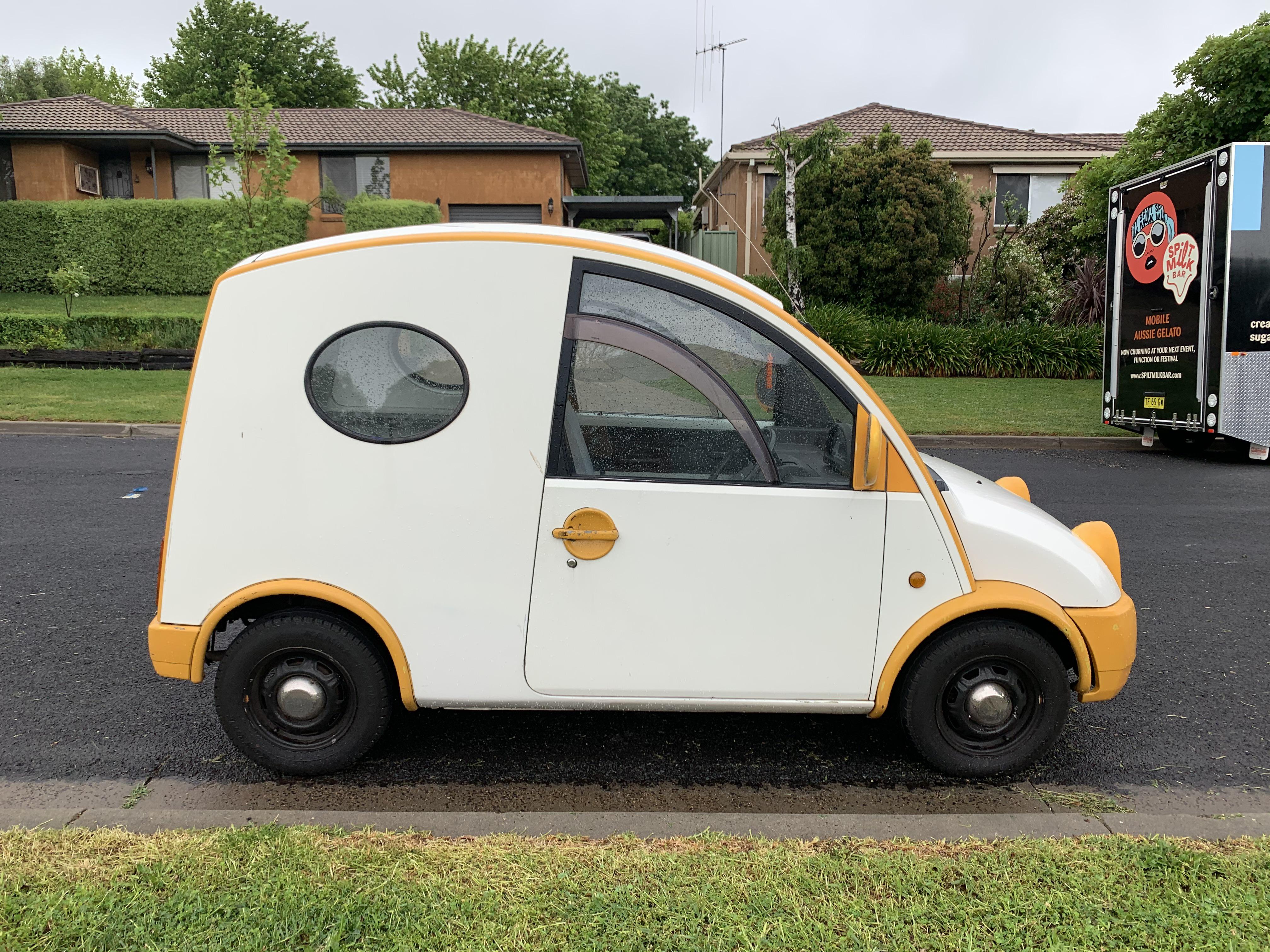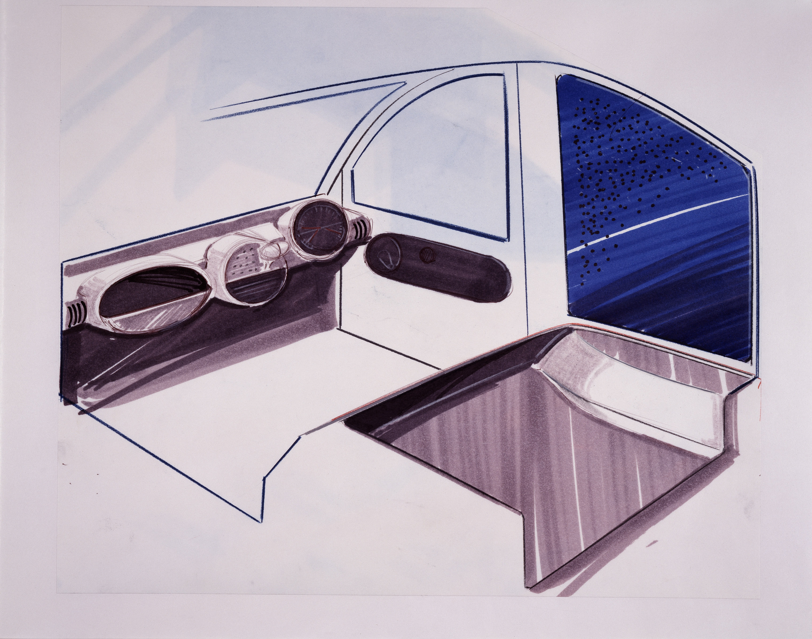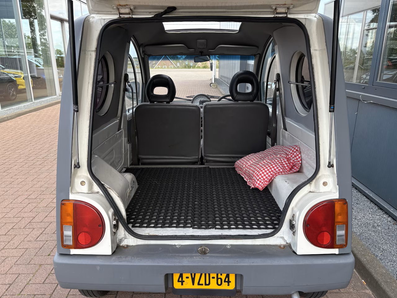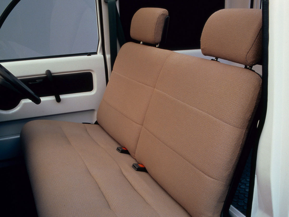 Il y a deux banquettes pour les passagers. Les vitres ne sont pas électriques mais il y a l'air conditionné, ce qui est plutôt rare dans un utilitaire de cette époque. Le poids à vide est de 970 kg et la a capacité de charge s'élève à 200 kg mais en rabattant la banquette arrière, il est possible de charger 300 kg.