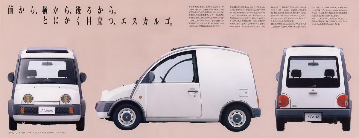 Egalement dévoilé en 1989, le S-Cargo est un jeu de mot entre Small Cargo et Escargot. En effet, ce petit véhicule commercial a une allure d'escargot et est inspiré, parait-il, de la 2CV camionnette. Même le volant à une branche de style Citroën a été copié. Réalisé sous la direction de Takayasu Matsui, son design particulièrement original ne fait pas l’unanimité mais il ne laisse pas indifférent, ce qui est idéal pour un véhicule utilitaire conçu pour les commerçants situés dans les petites rues des centres-villes. Ses grandes surfaces latérales en font un support médiatique idéal.