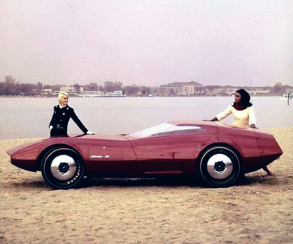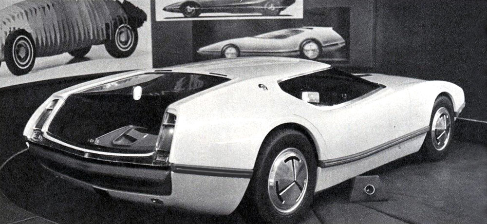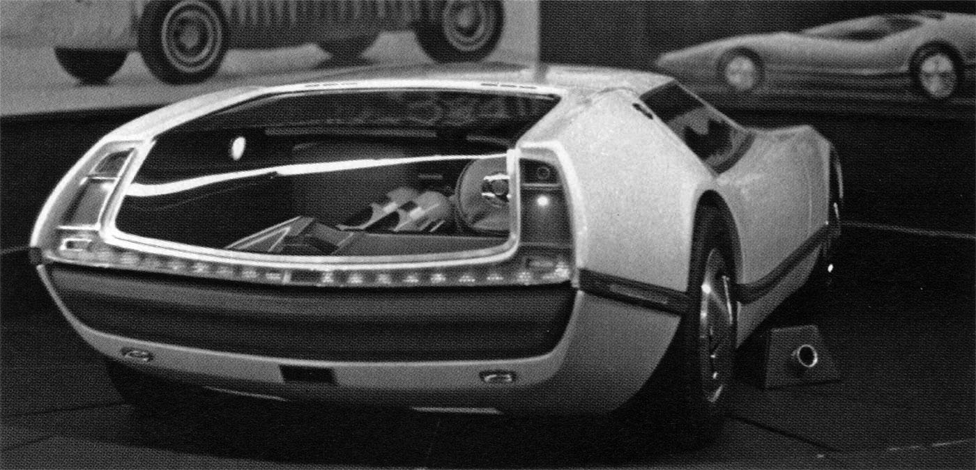 La forme particulière de la lunette arrière sera reprise l'année suivante sur le concept 270X. Sinon le profile me rappelle le concept de la Dodge Charger III de 1968.