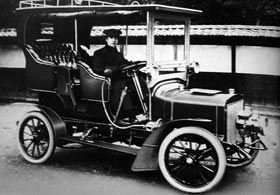 En 1902, Shintaro Yoshida, importateur de bicyclettes à Ginza, Tokyo, se rend aux Etats-Unis pour acheter des vélocipèdes. Il en profite pour se rendre au 3e salon de l'automobile de New York. Il y a là une grande variété de véhicules dont les premières Cadillac et Oldsmobile. Il y a encore beaucoup de machines à vapeur, mais le moteur à essence est déjà bien répandu. Il y a même des voitures électriques.
