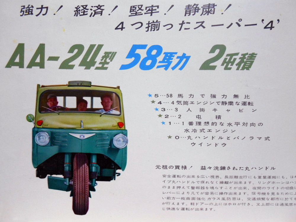 Le premier modèle de 1947 est le AA-1, c'est un véritable camion à 3 roues. C'est le premier tricycle à avoir un moteur boxer OHV à refroidissement liquide, une cabine fermée et un volant à la place du guidon. Ce moteur est un bicylindre de 1145 cm3 et 41 ch accouplé à une boîte manuelle à 4 rapports, il équipe entre autres le Giant Condor AA-7 de 1952.