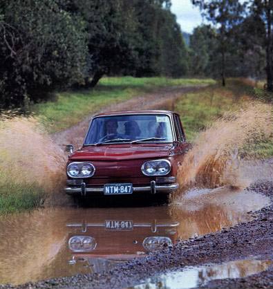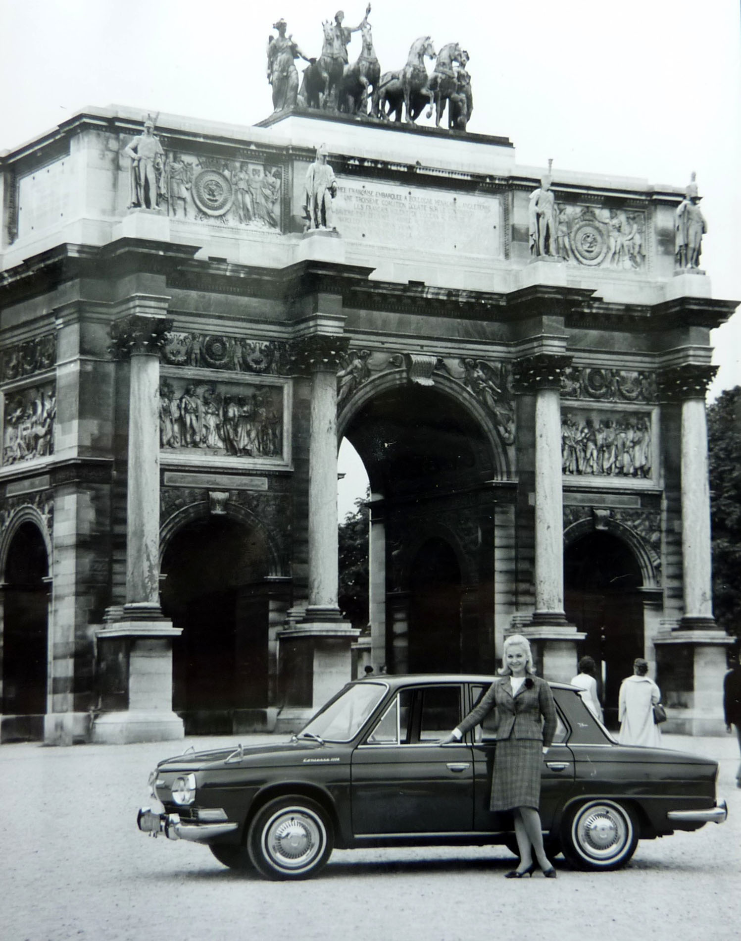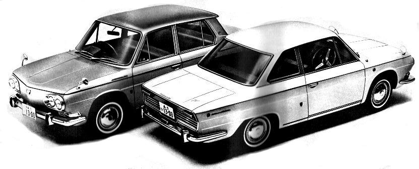 En regardant cette face avant dépourvue de calandre, je ne peux m'empêcher de penser à la Chevrolet Corvaire également à moteur arrière et dessinée en 1959. La Berline est livrée en version Standard ou Deluxe. La Standard, plus économique, dispose de moins d'équipement et est reconnaissable aux optiques simples à l'avant, alors que la Deluxe dispose d'optiques doubles.