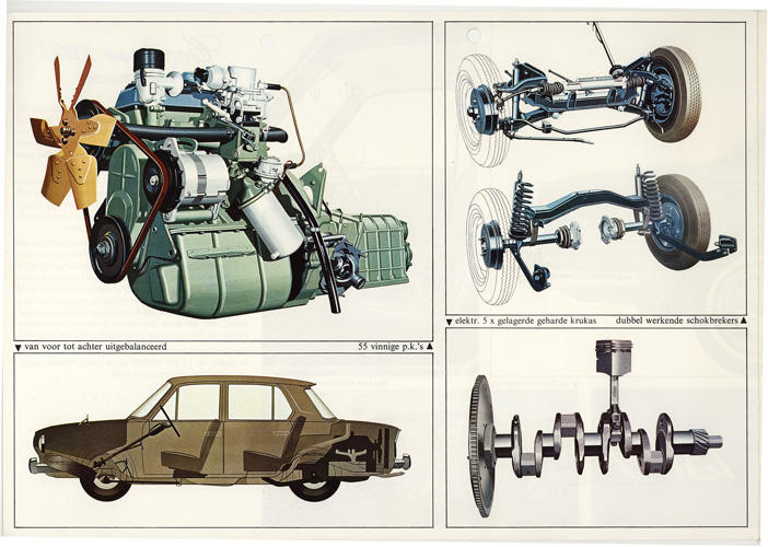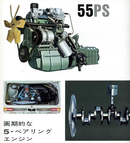 Le moteur (GR100) est un 4 cylindres OHV de 1251 cm3 développant 55 ch [SAE] à 5500 t/min. Une version tunée de 65 ch est montée dans la Berline S et la Coupé, ce qui est tout à fait comparable avec une Simca 1200. Le vilebrequin repose sur 5 paliers.
