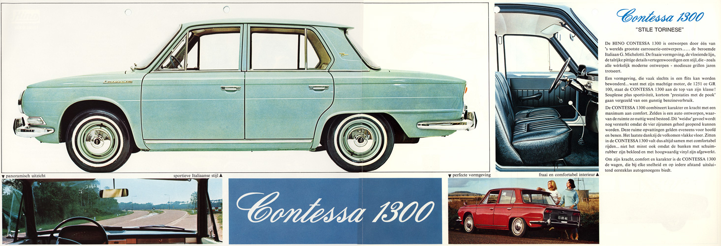Le projet de la Contessa 1300 remonte au début des années 60. On pense faire une grande soeur à la Contessa 900, plus adaptée à une volonté d'exportation. Sa conception est calquée sur la Renault 10. Pour la carrosserie on fait appel au styliste italien Michelotti. Il en traçe la ligne dès 1961, mais c'est en 1964 qu'est dévoilée la belle, au salon de Tokyo. Elle est produite parallèlement à la Contessa 900. A cette époque, Michelotti a un assistant, Dany Brawand, qui a probablement collaboré au design.