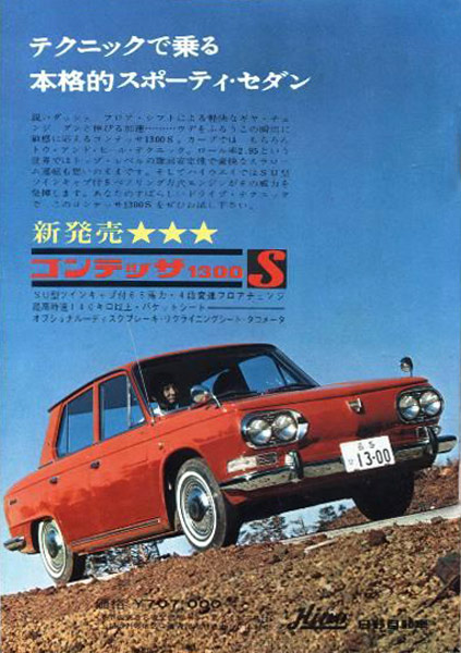 Au salon de Tokyo 1966, sont présentés deux prototypes. Une Contessa 1300S dont le moteur est alimenté par deux carburateurs Mikuni-Solex. Avec une admission et un échappement améliorés, ainsi qu'un taux de compression augmenté, la puissance est proche de 80 ch.. La seconde auto est une Contassa 1300 Coupe S, avec une culasse DOHC et deux carburateurs double-corps Solex. la puissance est supérieure à 90 ch. Une version de série est en projet, la Contessa 1300 Coupé GT ne verra jamais le jour.