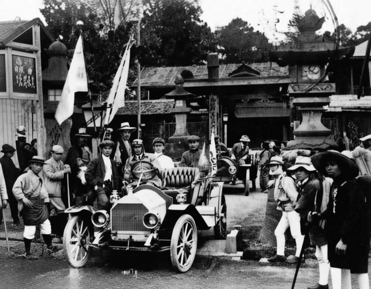 La première compétition motorisée du Japon se déroule le 3 novembre 1901 dans le parc de Ueno à Tokyo avec trois véhicules à 2, 3 et 4 roues. La course est remportée par le quadricycle Gladiator de fabrication française, devant les deux autres engins, Thomas de fabrication américaine à moteur 4 temps De Dion-Bouton 200 cm3. La suprématie des quatre roues a permis une vitesse mesurée de 36 km/h.