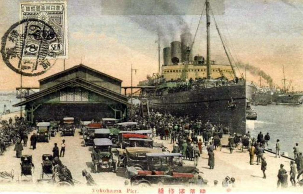 Débarquement de voitures américaines importées port de Yokohama 1919 |