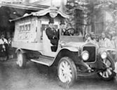 En décembre 1908, la Poste de Tokyo se sert de trois camions pour la distribution du courrier de Noël en lieu et place de deux charrettes tirées par des chevaux.