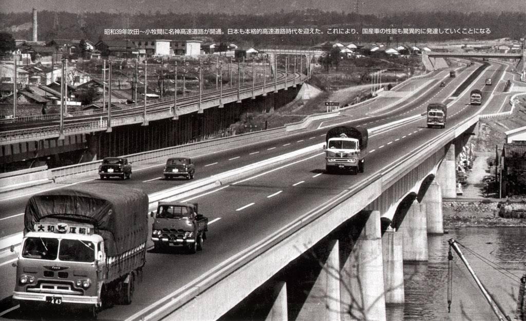 A la fin des années 50, un plan national de construction d'autoroutes est lancé. Plusieurs compagnies sont mandatées pour des tracés définis. La première portion d'autoroute est ouverte en 1963 entre Osaka et Kyoto, par la suite la Meishin Expressway reliera Kobe à Nagoya. La Tomei Expressway permet de rouler entre Tokyo et Nagoya depuis 1969. La Shuto Expressway est un réseau de voies rapides à la périphérie de Tokyo. Initié en 1962 pour désengorger la métropole, il compte 280 km dans les années 2000.
