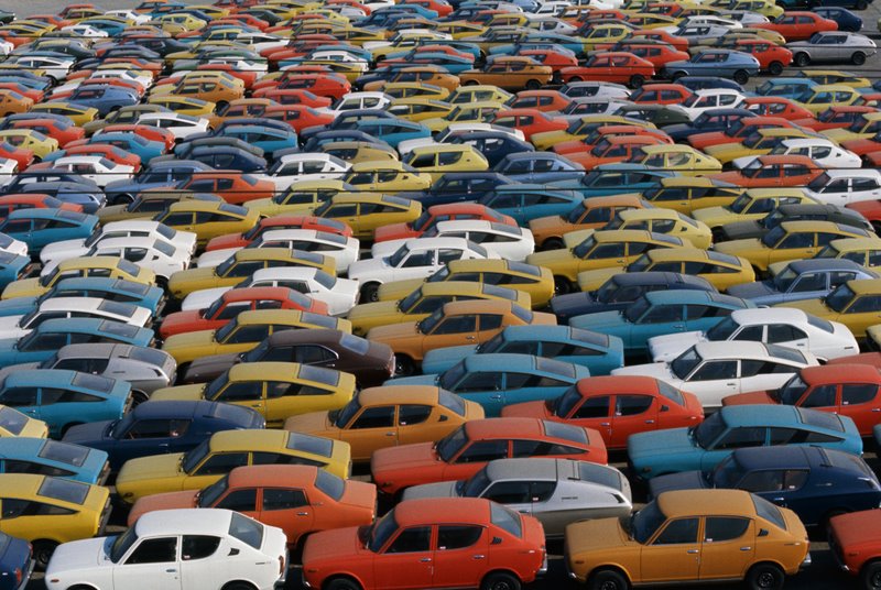Des Nissan attendent le bateau qui va les emmener aux USA, 1975 |