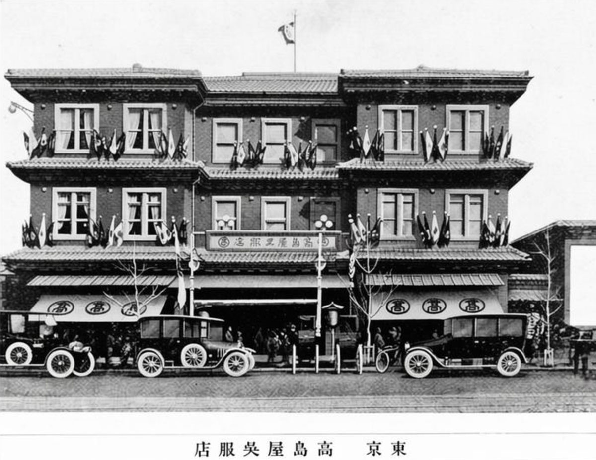 Le grand magasin Takashimaya fondé à Kyoto en 1831 ouvre une succursale à Minami-Denmacho (aujourd'hui Kyobashi) en 1916, Nihonbashi, Tokyo. Spécialisé dans les vêtements de cérémonie et kimonos traditionnels japonais (gofuku), il est une institution au Japon.
