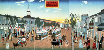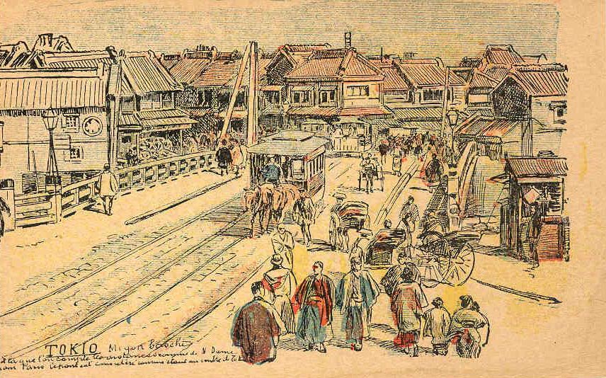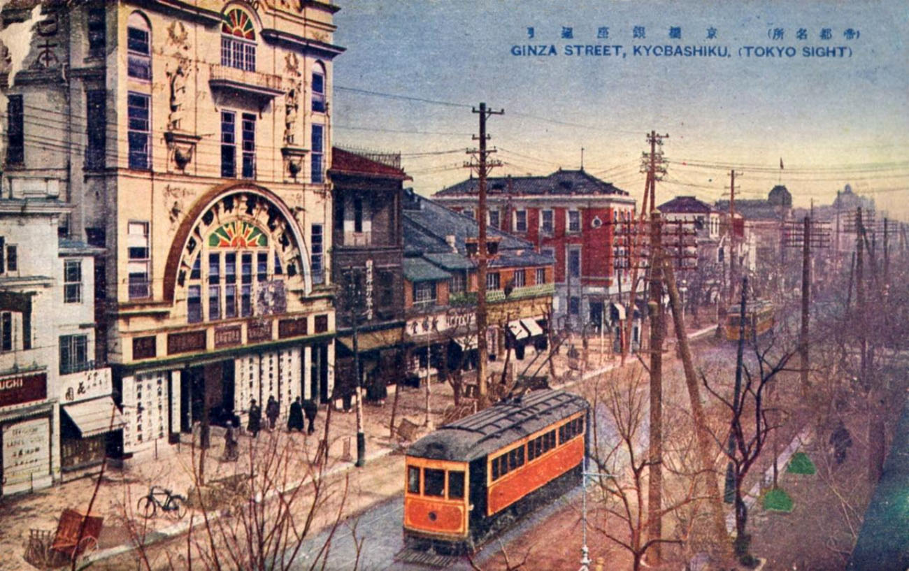 Ginza est le quartier moderne de la capitale, c'est ici que les grands magasins ouvrent leurs portent, que les cafés à la mode s'installent. Ginza est en quelque sorte l'endroit par où le Japon s'occidentalise. La préfecture de Tokyo compte à cette époque environ 1 millon d'habitants. En 1908, ils sont 2.67 millons !