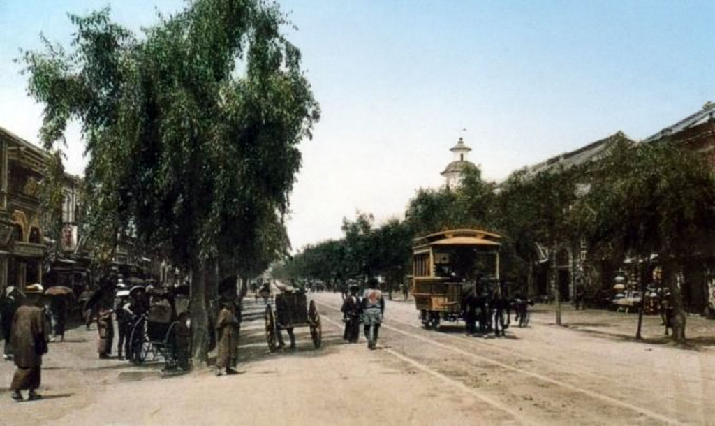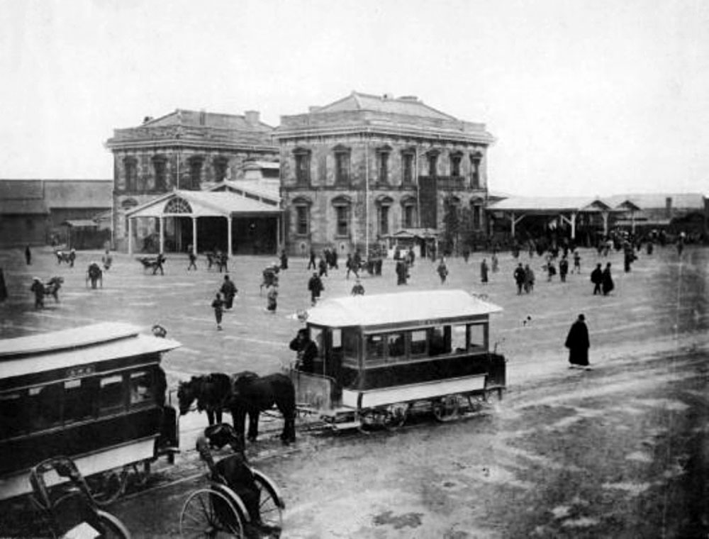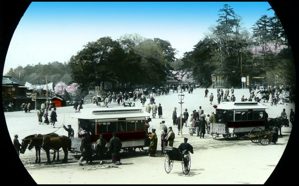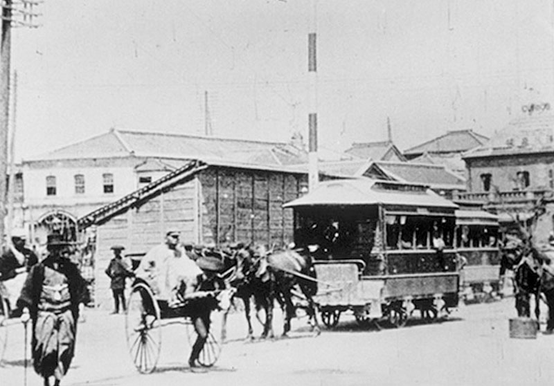 Le premier réseau de transport public urbain de Tokyo est composé de tramways tirés par des chevaux (streetcars).