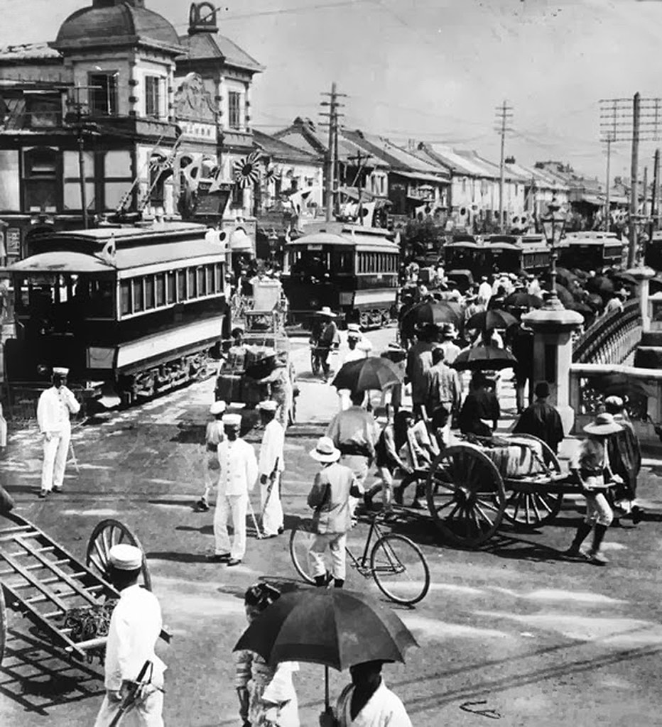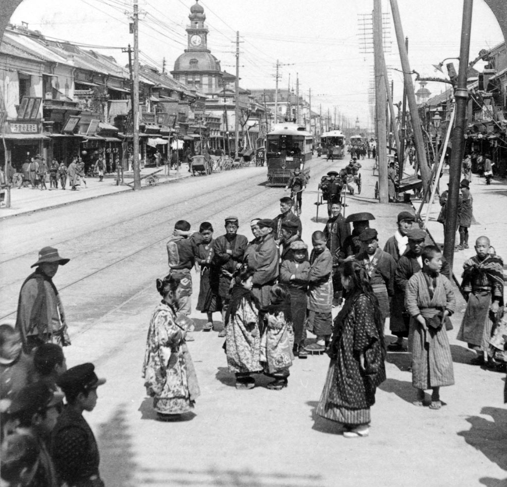 Tramway électrique à Ginza 1904, Tokyo 1905 |