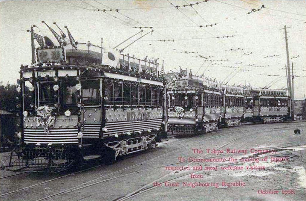 A Tokyo. trois compagnies sont créées afin de tisser un réseau dans la capitale. La première ligne électrifiée est ouverte en 1903 entre Shinagawa et Shinbashi. Trois ans plus tard, 919 trams parcourent quelques 143 km de voies. En 1924, ce sont presque 500 millons de passagers qui empruntent le tram à Tokyo. Vers le fin des années 50, à l'apogée du tram, 41 lignes couvrent 213 km de rails.