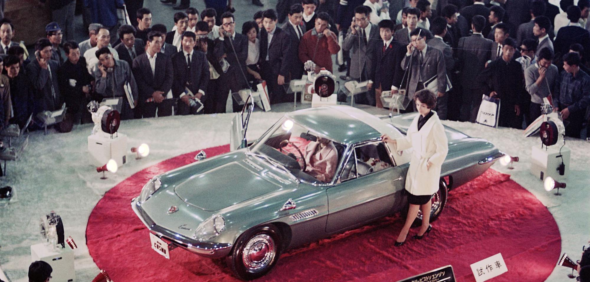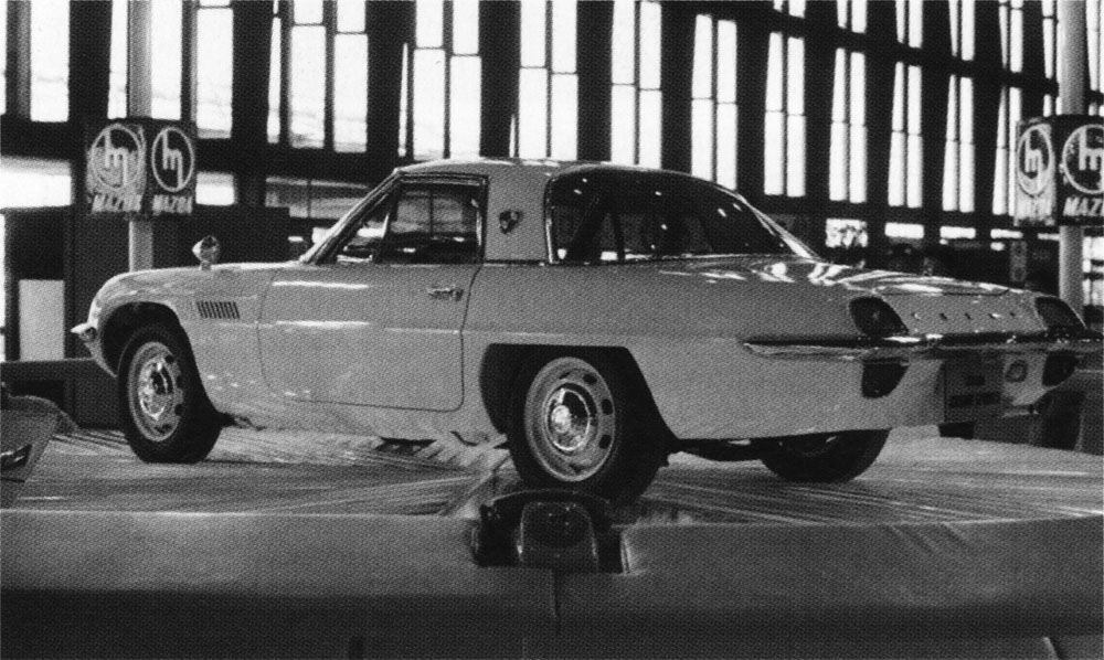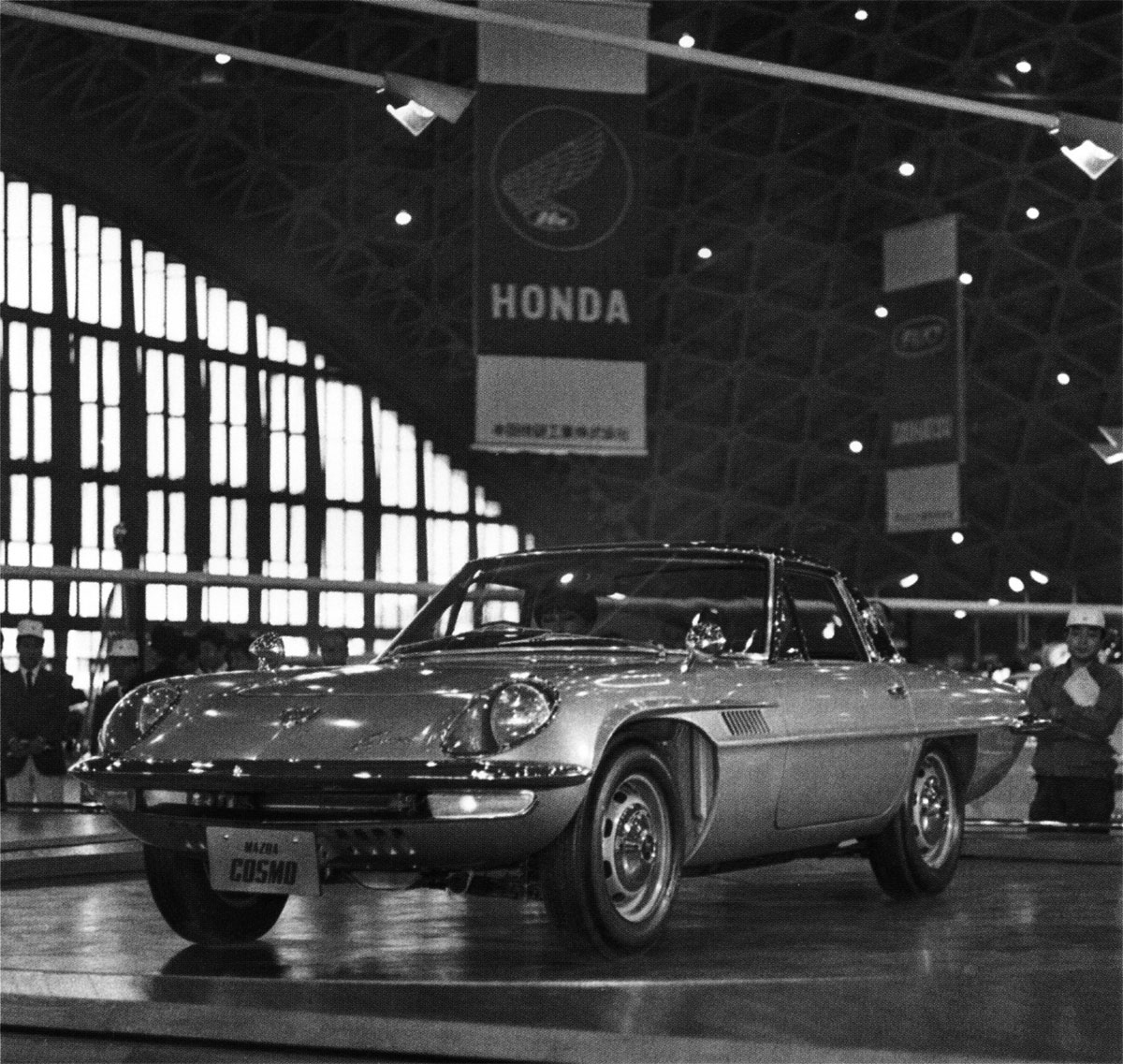Mazda est l'un des premier constructeur automobile à s'intéresser au moteur Wankel à piston rotatif. Les droits sont acquis en 1961 auprès un accord avec NSU. Le développement de ce moteur donne beaucoup de fils à retordre aux ingénieurs de Mazda. Au salon de Tokyo de 1963, Mazda expose le shéma de l'auto et de son moteur, puis l'année suivante est dévoilé le prototype de la Cosmo Sport.