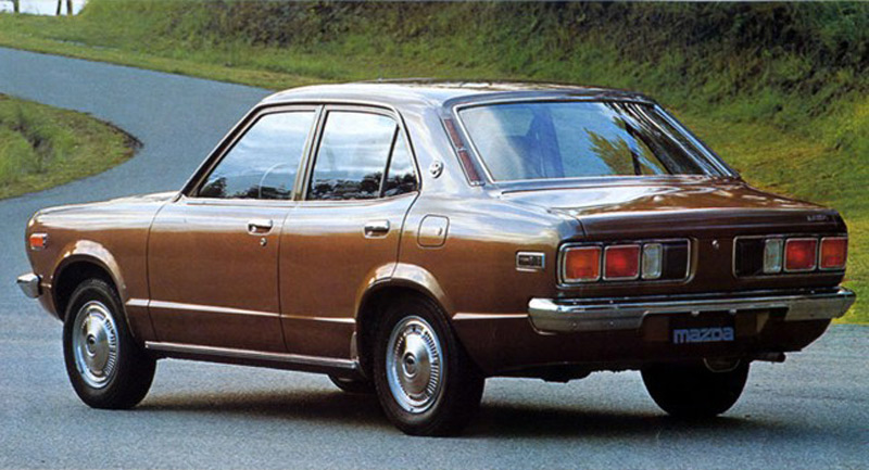 Pour l’Océanie, elle prend le nom de Mazda 808, et en occident c’est la Mazda 818. Le catalogue donne le choix entre un coupé deux portes, une berline 4 portes et un break 5 portes. Les moteurs disponibles sont tous des 4 cylindres en ligne, le TC de 1272 cm3 et le UB de 1490 cm3 qui est remplacé en 1973 par le NA de 1586 cm3. Les puissances développées sont respectivement de 87, 92 et 100 ch.