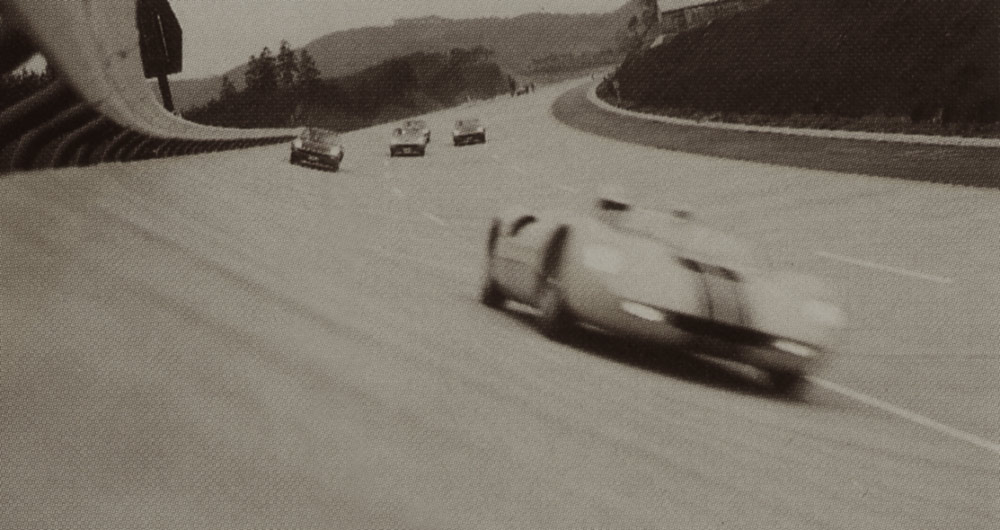 Les essais se déroulent sur le circuit du centre de test automobile de Miyoshi, près de Hiroshima, qui vient d’être inauguré par Mazda pour le développement de la Cosmo. C’est une piste en ovale avec virages relevés qui autorise des vitesses élevées.