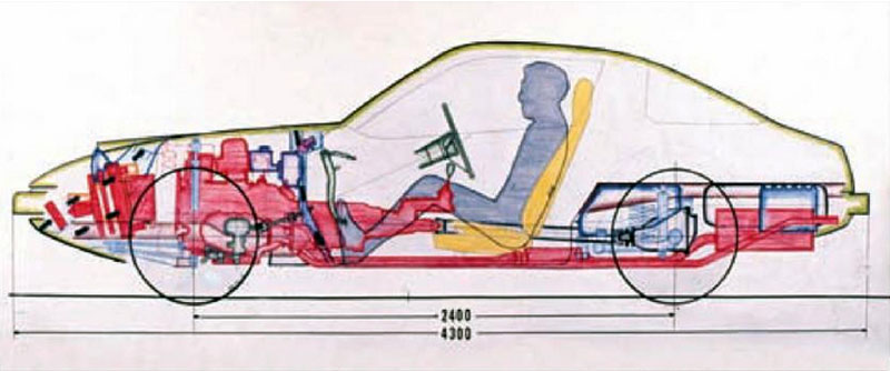 Vient ensuite le hayon arrière. Maeda et son équipe ont prévu une grande vitre incurvée qui couvre tout l’arrière revenant jusqu’au montants de custode. Et là les finances ont tranché au vu du coût de la réalisation d’une telle lunette. Il sera fait trois parties vitrées dont seule la centrale s’ouvre en hayon. Afin de minimiser l'impact de cette modification sur la ligne générale de l'auto, les montants sont "cachés" sous les verres et peints en noir. Les vitres sont teintées pour atténuer encore les séparations.