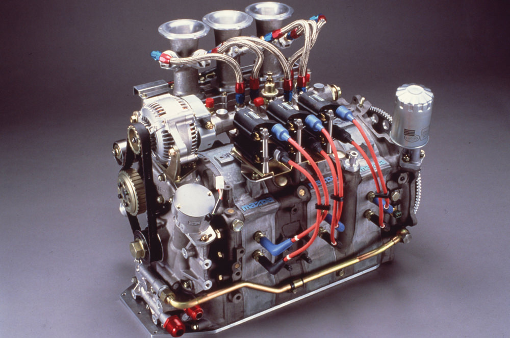 C'est un moteur à deux pistons rotatifs avec rotors et chambres trochoïdes en alliage d'aluminium. Les joints apex sont en céramique, procédé venant directement des voitures du Mans. Il a un double système d'injection, un directe dans les chambres de combustion et un autre dans l'admission.
