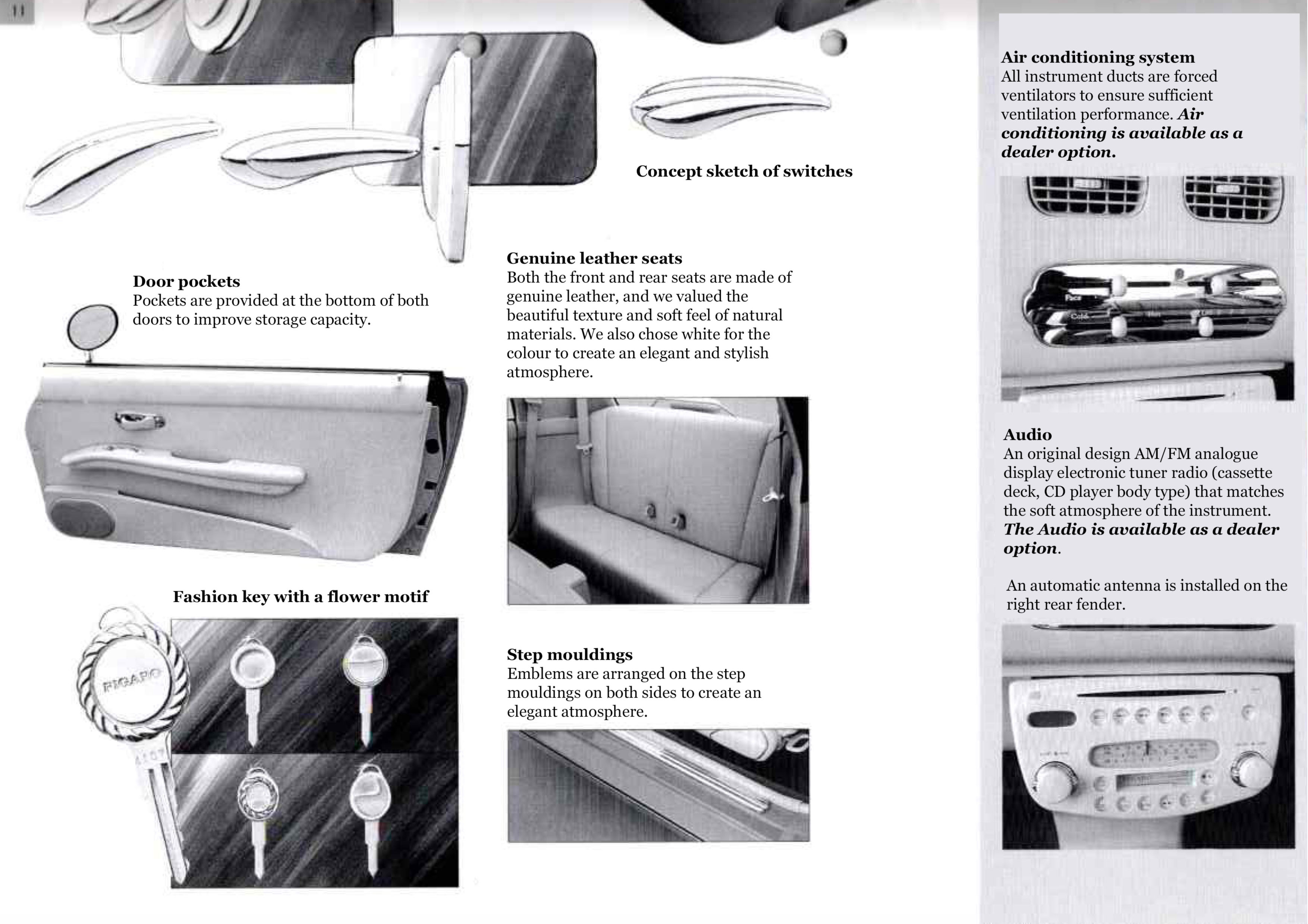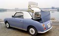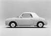 La jolie carrosserie aux courbes féminines simples et fluides doit son design à Naoki Sakai et Shoji Takahashi, ce dernier ayant été récompensé pour cette réalisation. Ici on ne s'inspire plus seulement des premières citadines japonaises, mais une influence avec la production européenne transparaît. Le design intègre des repères clé rappelant intuitivement les voitures des années 60. Les phares ronds avec la calandre ovale qui lui donnent une bouille sympathique, les chapeaux de roues pleins sur des jantes de 12'', les rétroviseurs ronds montés sur des pieds chromés, les rappels de clignotants en forme de larme, le support de plaque arrière chromé, la peinture bi-tons, les poignées de porte…