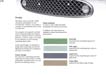Quatre coloris pastel sont à disposition, ils portent les noms de pierres précieuses et évoquent les quatre saisons de l’année : le vert émeraude pour le printemps, le bleu aigue-marine pour l’été, le beige topaze pour l’automne et le gris lapis-lazuli pour l’hivers.