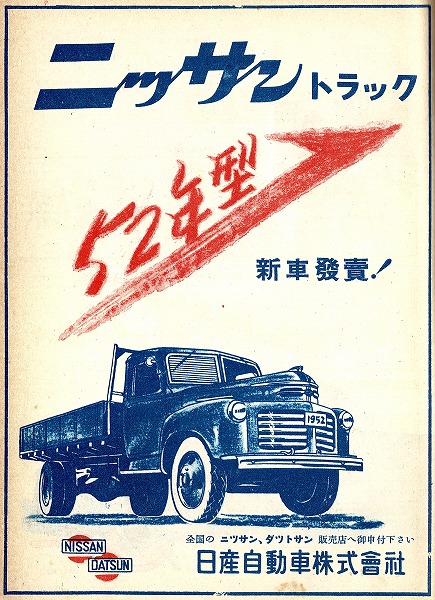 En 1952 débute la commercialisation de la Nissan A40, une Austin A40 Somerset anglaise fabriquée sous licence. C'est aussi l'année de lancement de la DC-3, un raodster sympathique qualifié de sport.