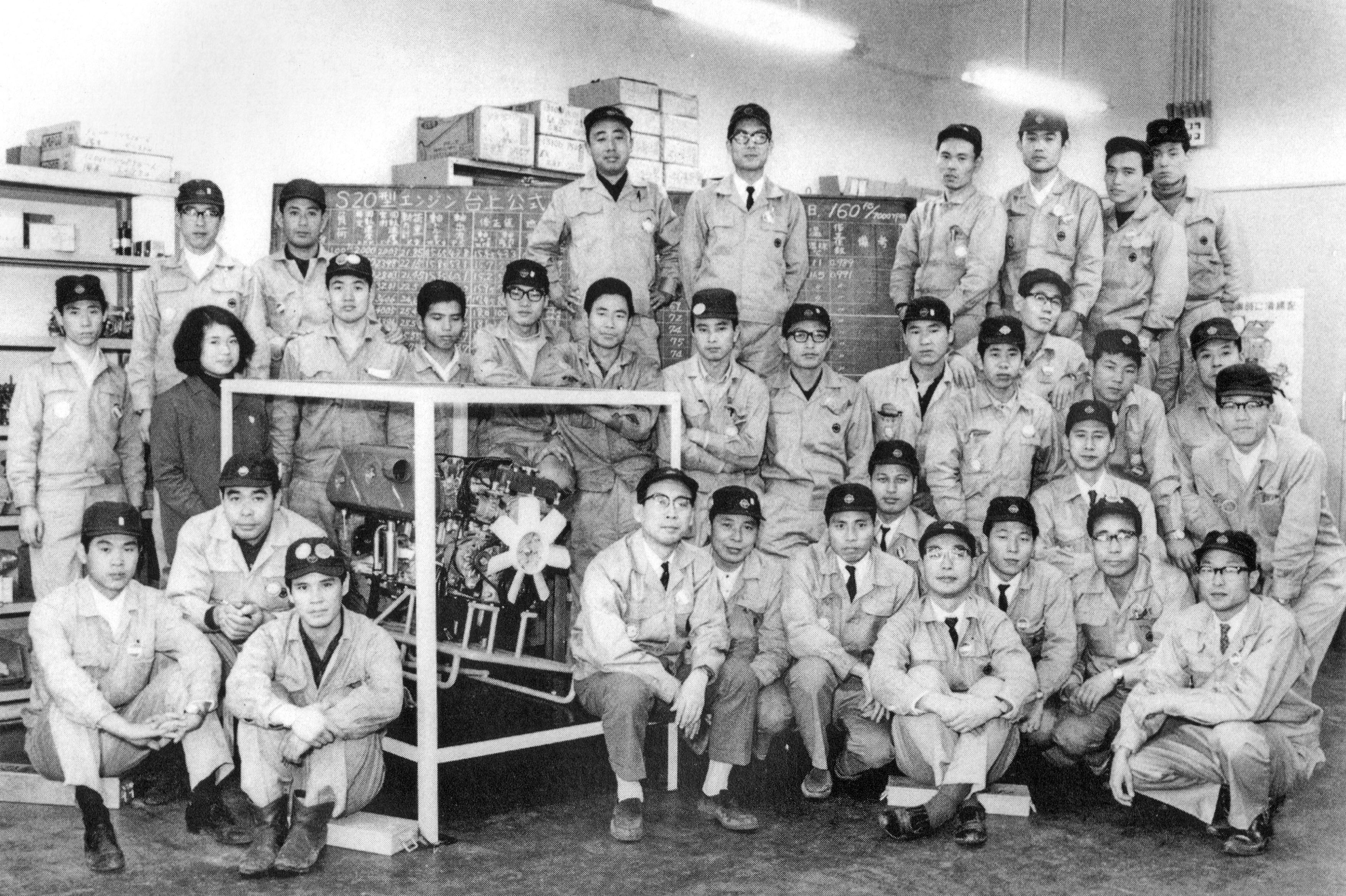 Toute l'équipe responsable du moteur S20 monté dans la Skyline GT-R et la Z432, 1969 |