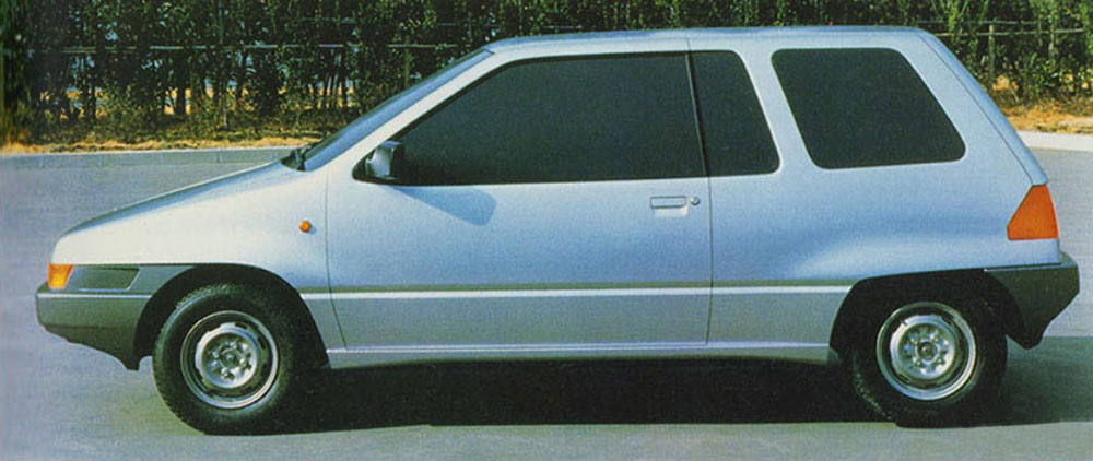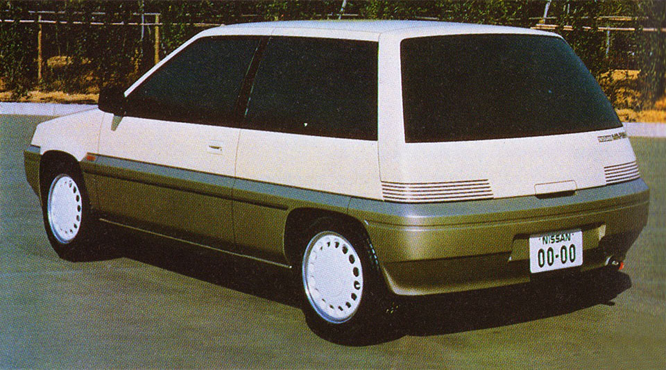 Prototype A : proposition des designers Nissan en interne. L'idée restera pour la future Nissan Prairie II de 1988.