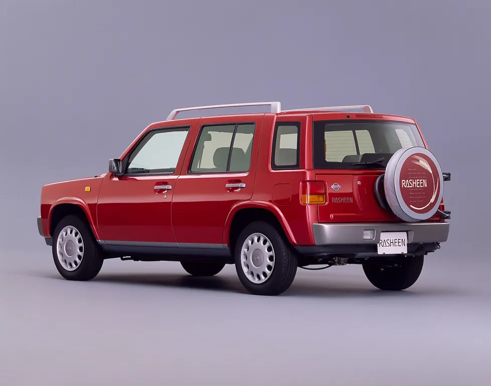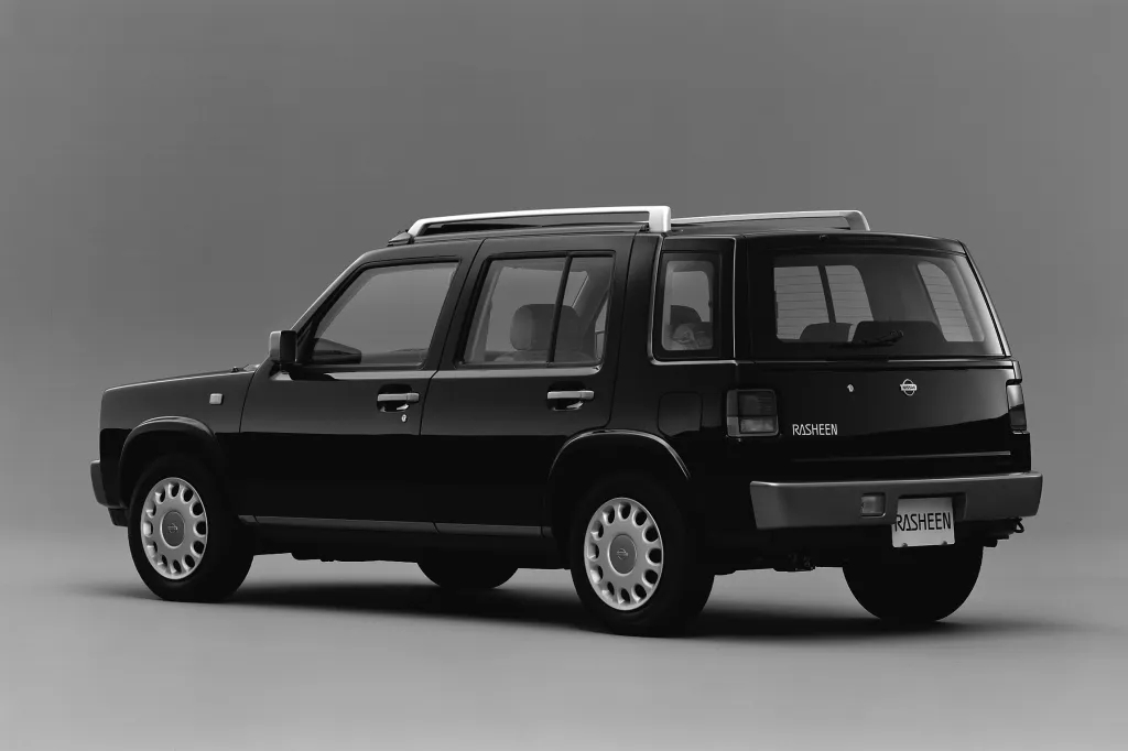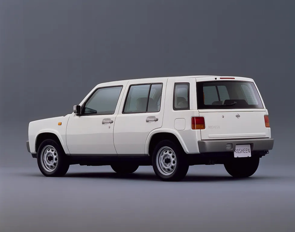 Le style carré et légèrement rétro est unique et ne ressemble à rien. Certains y voient une similitude avec la Wartburg 353 (1966-1989). Il est présenté au salon de Tokyo 1993 et la production démarre l’année suivante. Il sort en même temps que le RAV4 de Toyota et si le style en est à l’opposé, il y a bien des similitudes entre les deux véhicules. Une transmission intégrale avec viscocoupleur, système ATTESA pour la Nissan, en fait des tout-terrain urbains, ou SUV. Et puis il y a la roue de secours sur la porte arrière.