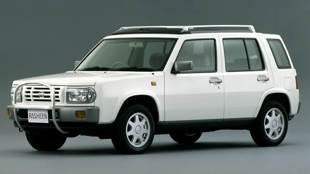 72 793 Rasheen ont été vendu de 1994 à 2000. Il est remplacé par le Quashqai. Les concurrents de l’époque comptent le Honda CR-V (1996), le Subaru Forester (1997) et le Land Rover Freelander (1997). |