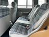 L’intérieur est traité sur un style néo-rétro avec un tableau de bord simple et propre, et des sièges recouverts de tissu à carreaux.