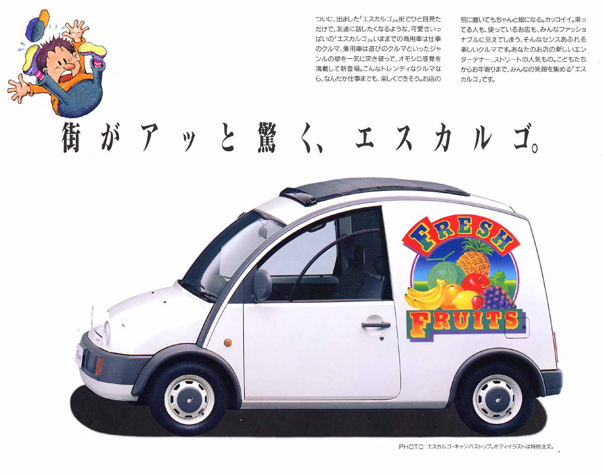 Egalement dévoilé en 1989, le S-Cargo est un jeu de mot entre Small Cargo et Escargot. En effet, ce petit véhicule commercial a une allure d'escargot et est inspiré, parait-il, de la 2CV camionnette. Même le volant à une branche de style Citroën a été copié. Réalisé sous la direction de Takayasu Matsui, son design particulièrement original ne fait pas l’unanimité mais il ne laisse pas indifférent, ce qui est idéal pour un véhicule utilitaire conçu pour les commerçants situés dans les petites rues des centres-villes. Ses grandes surfaces latérales en font un support médiatique idéal.