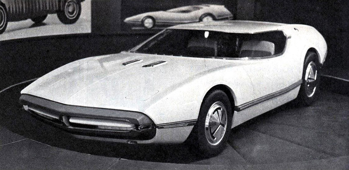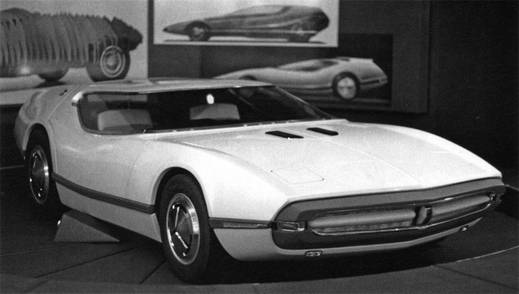 La forme particulière de la lunette arrière sera reprise l'année suivante sur le concept 270X. Sinon le profile me rappelle le concept de la Dodge Charger III de 1968.