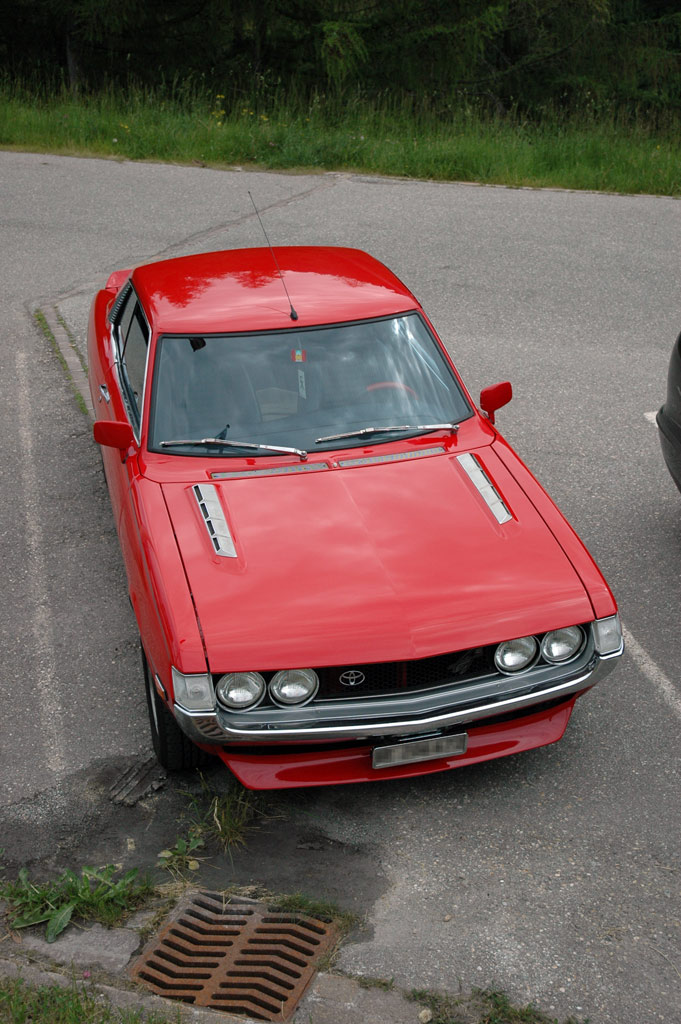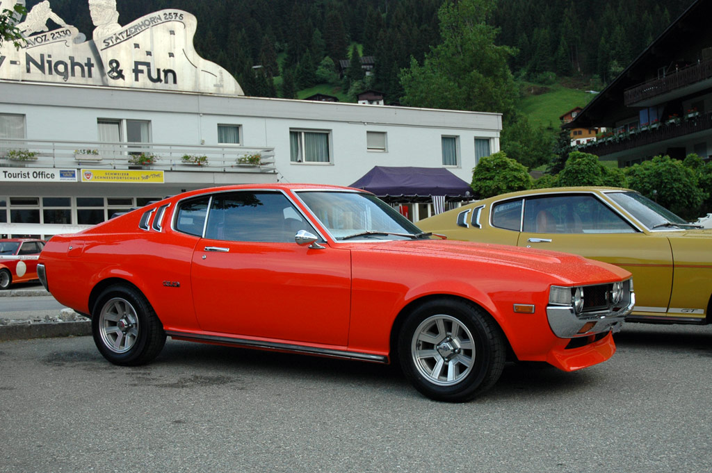 La Celica GT débute au Japon en 1971 puis arrive en Europe en 1974 avec une culasse en aluminium à deux arbres à cames en tête et deux carburateurs double-corps Mikuni/Solex (2T-G). Conçu par Yamaha et techniquement dérivé du moteur de la 2000GT, celui-ci développe 115 ch [SAE] à 6400 t/min pour un taux de compression de 9,8:1. La suspension est plus dure et la boîte de vitesse est à 5 rapports.