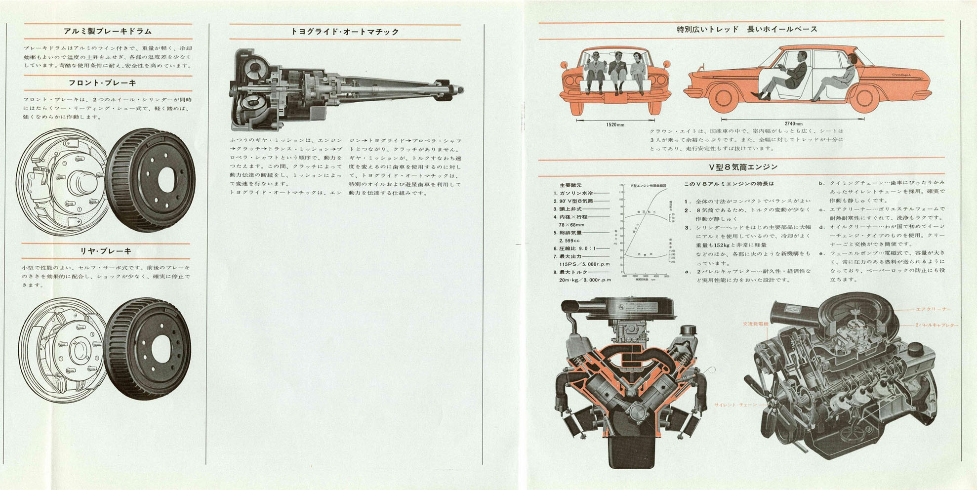 Au salon de l'automobile de Tokyo de 1963 est présentée la Crown Eight (VG10), une berline luxueuse destinée au marché japonais uniquement, et plus spécialement aux membres du gouvernement. Plus grande que la Crown normale, elle est mue par un moteur V8 de 2599 cm3. Elle ne remporte pas les faveurs des officiels qui lui préfèrent la Nissan Prince Royal mais elle entre tout de même en production.