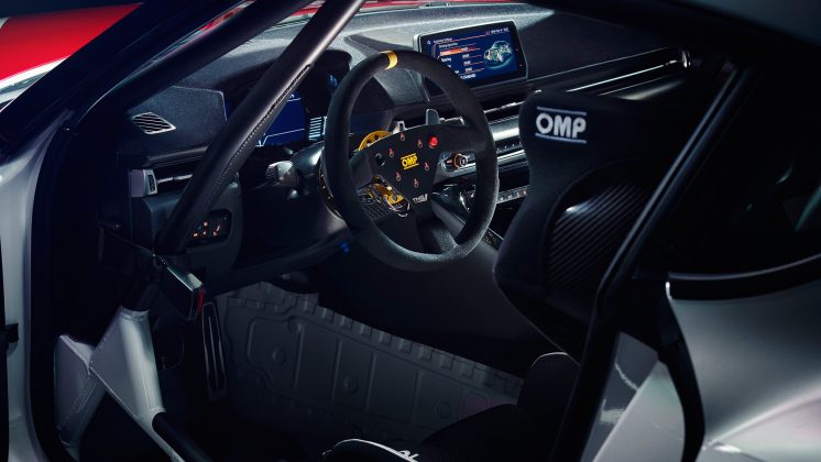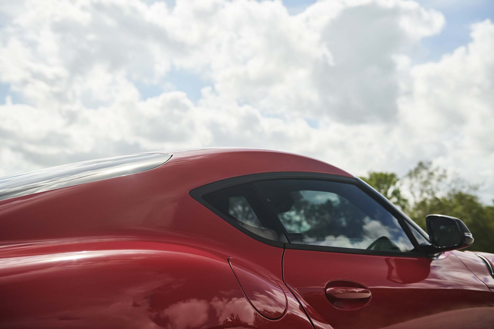 C'est Gazoo Racing, la branche sportive de Toyota, qui développe l’auto sur la base du châssis BMW. La GR Supra est la première automobile développée par Gazoo Racing qui soit vendue globalement hors du Japon. La ligne s’inspire bien de la FT-1, en plus sage. Les montants de parebrise noirs et le toit à double bulbe renvoient directement à la 2000GT de 1967. La carrosserie est affublée de nombreuses grilles d’aération factices : ailes avant et arrière, portes et capot. Elle est légèrement plus compacte que les générations précédentes de Supra, c’est une deux places strictes. L’habitacle est sobre, les compteurs sont digitaux. La visibilité vers l’avant est dégradée par les montants épais et inexistante vers l’arrière. Le petit coffre est rendu difficilement acessible par un arrière haut perché.