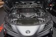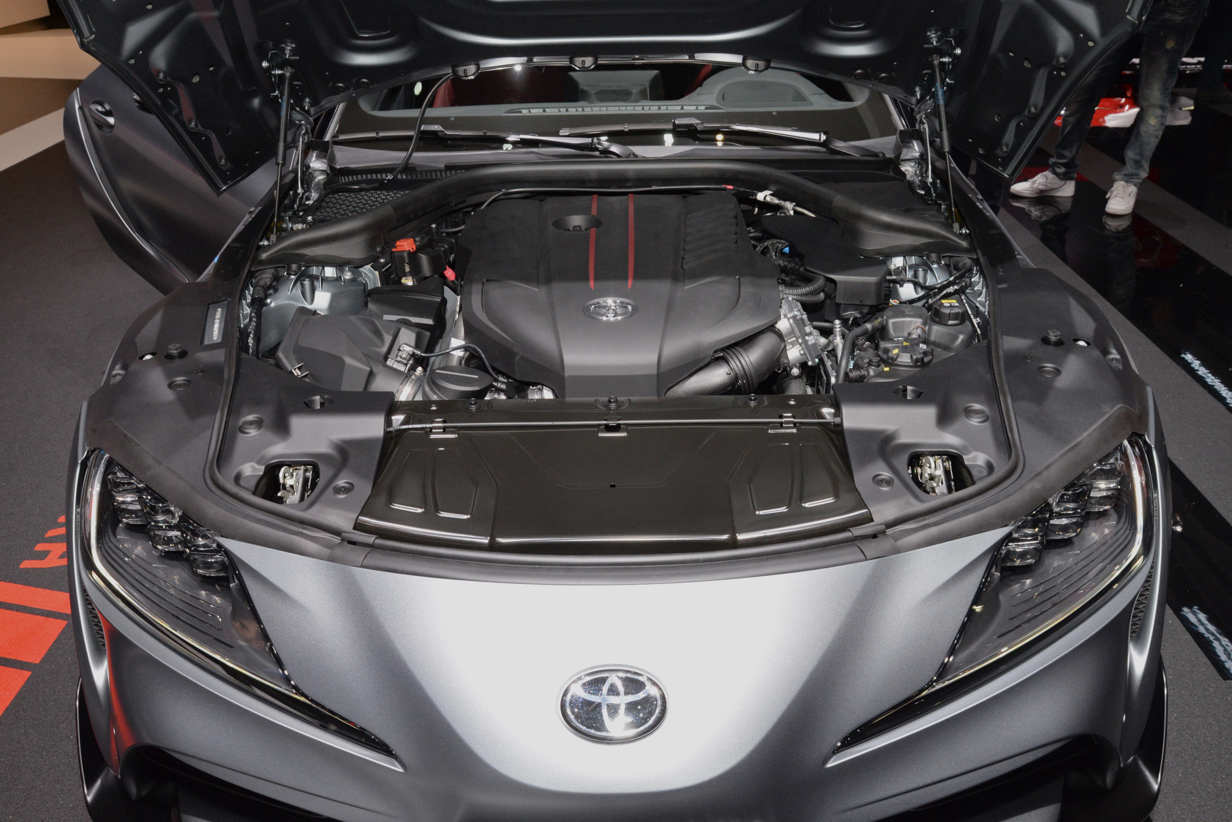 Plutôt que de développer un nouveau moteur, Toyota adopte le fantastique moteur B58B30/01 de la BMW. C’est un 6 cylindre en ligne de 3.0 litres 24 soupapes suralimenté tout aluminium. Donc un groupe hybride n'est pas d'actualité, peut-être plus tard. Le turbo a une turbine à double volutes (Twin scroll). Il est équipé des technologies VANOS et Valvetronic (voir plus bas). La surface des cylindres est recouverte d’une pellicule métallique déposée par arc électrique sous haute pression. Ce procédé augmente la résistance à l’usure, favorise la dissipation de chaleur, réduit le frottement et permet d’avoir des parois de cylindres plus minces, donc un gain de poids et d’encombrement. La boîte de vitesses est automatique à 8 rapports et le pont arrière contient un différentiel dont la répartition du couple sur les roues est réglée électroniquement.