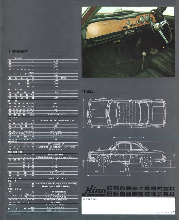 L'année suivante est présenté le Coupé 2 portes (PD300/PD400) au salon de l'automobile de Turin. L'intérieur a une touche sportive avec son volant à trois branches, ses sièges enveloppants et un tableau de bord signé Michelotti du plus bel effet. La planche en faux bois intègre des compteurs ronds. Alors que celle de la Berline, dessinée en interne chez Hino, est flanquée d'un compteur de vitesse panoramique et d'un volant très conventionnel, à la façon des voitures américaines.