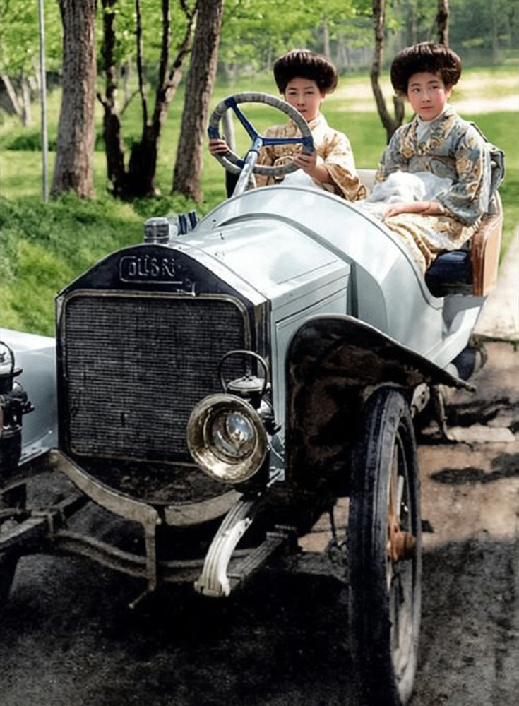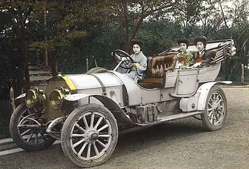 Deux geishas en NAW (Norddeutsche Automobilwerke) Colibri 1910 |